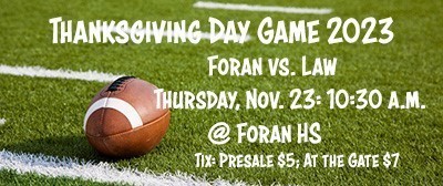 Thanksgiving Day Football Game Details: Thursday, 11/23 @ Foran High, 10:30 a.m.