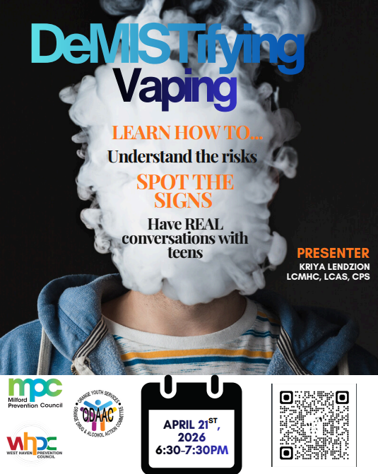 The Milford Prevention Council will host a virtual event about vaping and how to talk to teens about it. Sign up here!